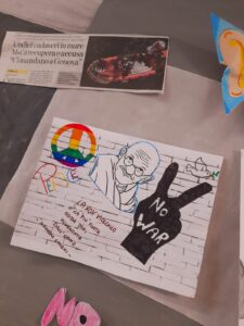 La Memoria di ciò che è accaduto ci deve guidare nella lettura del presente che è drammaticamente sotto i nostri occhi. Ciascun ragazzo ha contribuito al lavoro realizzando un pannello del Muro e con frasi di poesie o canzoni, disegni, articoli di giornale.