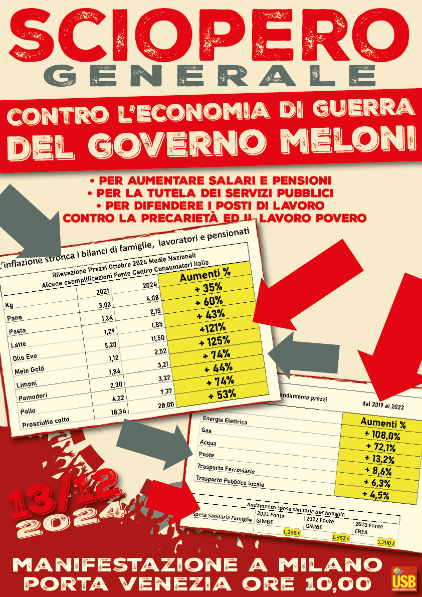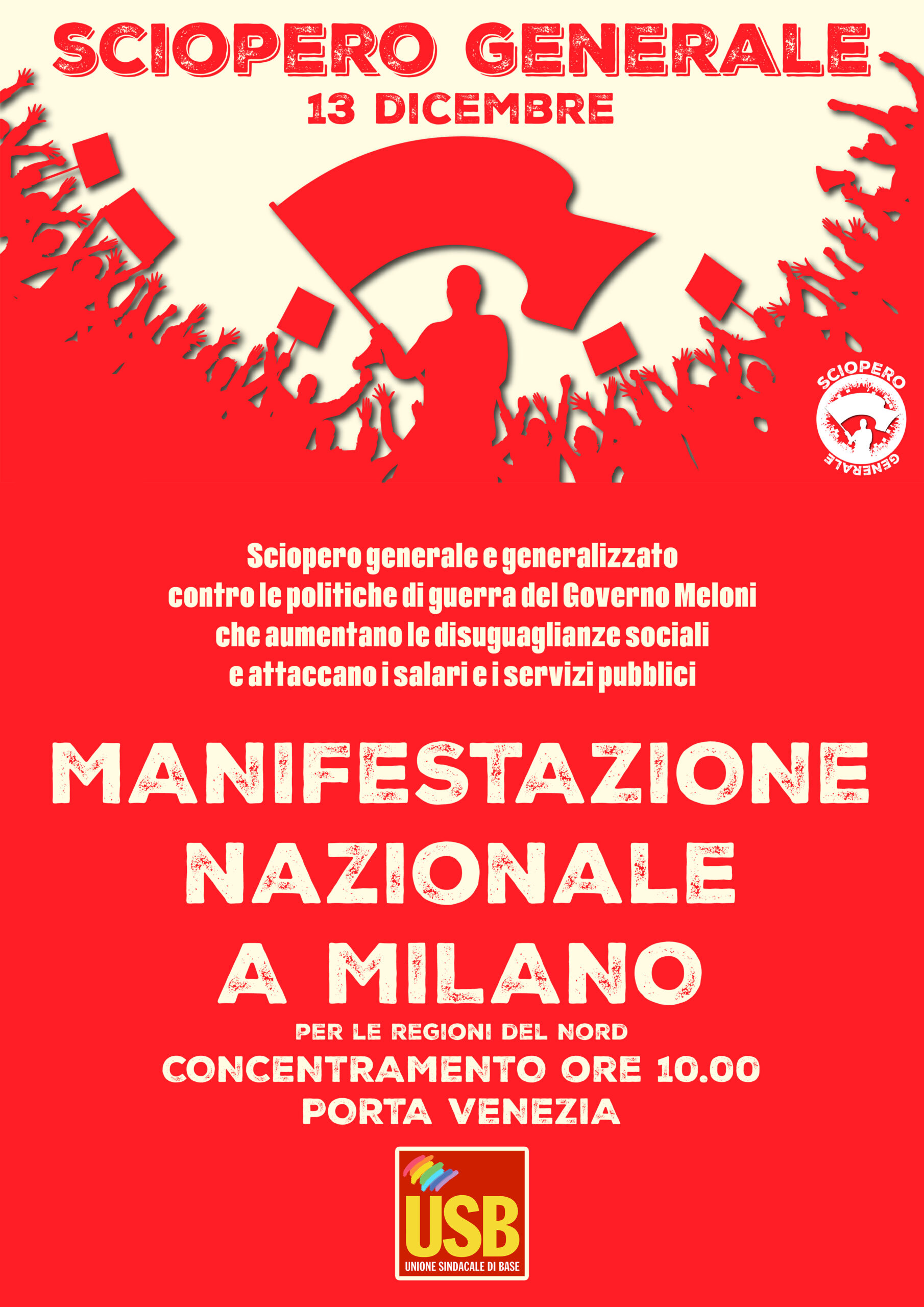 Si comunica che l’Organizzazione Sindacale USB (Unione Sindacale di Base) ha proclamato uno sciopero per l’intera giornata del 13 dicembre 2024. Per le informazioni sulle modalità ed i motivi
